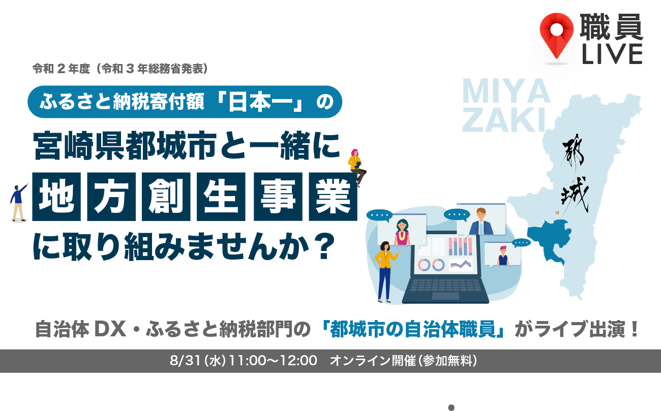 8/31 (水) 【職員LIVE】ふるさと納税寄付額「日本一」の宮崎県都城市と一緒に地方創生事業に取り組みませんか?